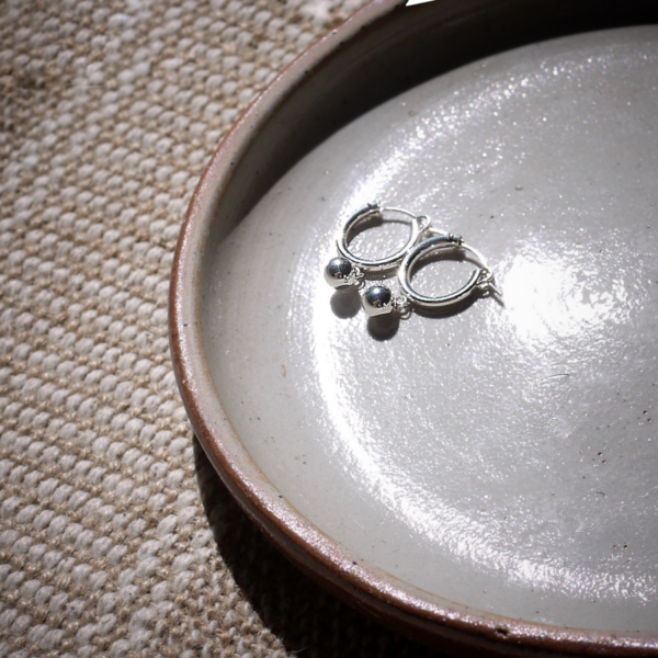 Boucles d’oreilles dormeuses et pendants sphère.